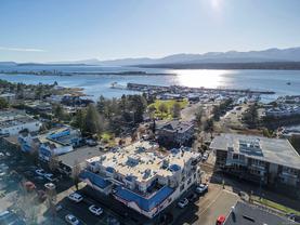 Elevate your daily life in this stunning coastal retreat hidden in the heart of downtown Comox! This south facing 2 bed 2 bath penthouse condo offers breathtaking panoramic ocean, mountain and city views from every window! Bask in copious amounts of natural light, with sunrise and sunset moments you won’t soon forget. Enjoy engineered hardwood flooring, quartz kitchen countertops, and a cozy natural gas firep...